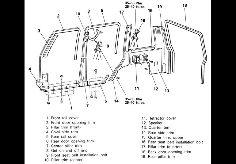 | Fig. 4: Interior trim components for the 1992–95 Monteros |