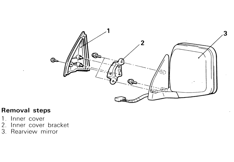 - Support the mirror housing from the outside and remove the three bolts or