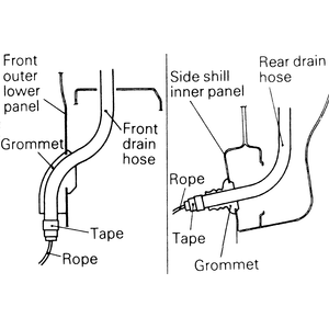 - If the drain hoses were removed, tie the rope that was used during removal