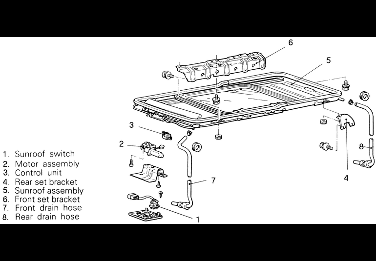 - When installing a new motor assembly, open the sunroof glass approximately