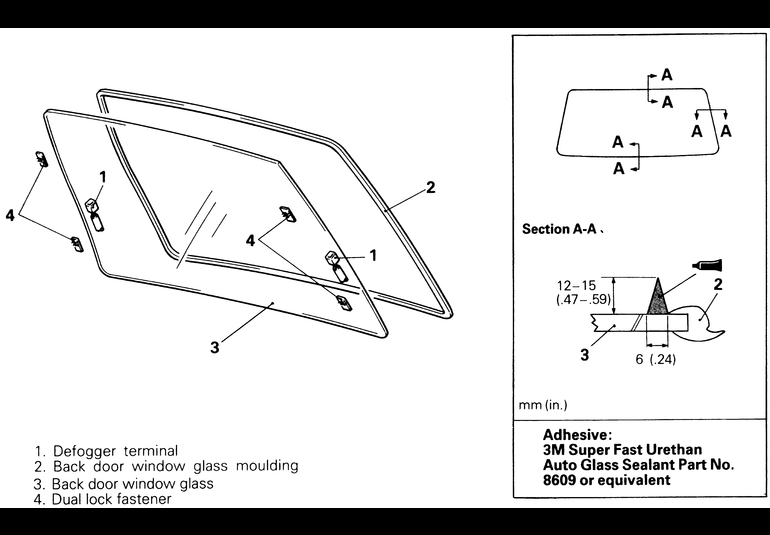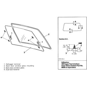 | Fig. 2: Back door window removal and installation components — Monteros |