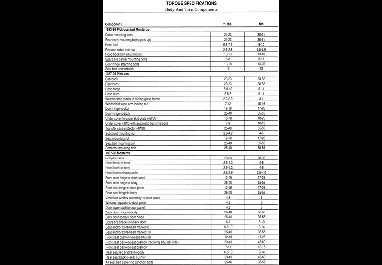 All the seat belt systems found on the Mitsubishi trucks (Pick-ups and Monteros) are removed and installed in generally the same manner. The system, whether the front seat belt system or the rear seat system, starts at the seat belt retractor, is routed up and through a seat belt bracket. The belt then travels to the seat, where it is attached to the seat belt buckle. The belt is routed through the buckle and then is attached to the vehicle floor. The other belt is fastened to the rear of the seat frame or to the floor, and is routed up through or around (depending on whether the seat is a bench type seat or a bucket type seat) the seat.