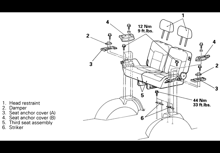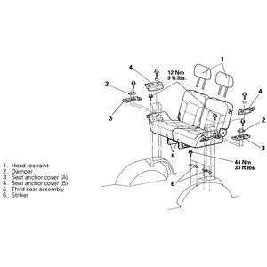 | Fig. 4: Third seat removal and installation components — 1992–95