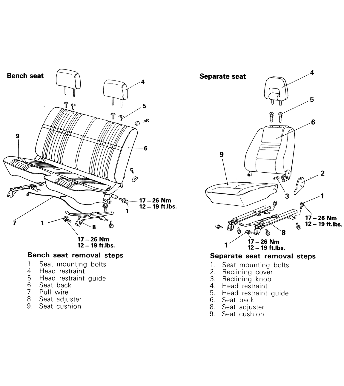 (44 Nm) for 1992–95 Monteros. Check the seat motion and locking