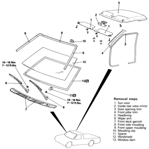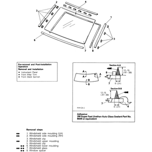 | Fig. 1: Windshield assembly removal and installation components — Monteros |