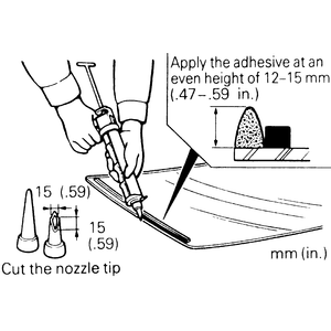 NOTE: Cut the nozzle tip of the sealant gun into a V shape to facilitate the adhesive application.