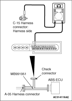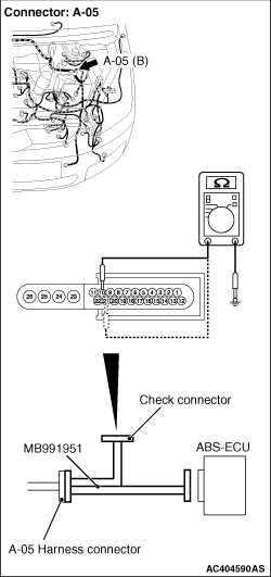 and connect special tool ABS Check Harness (MB991951) to the wiring harness-side connector.