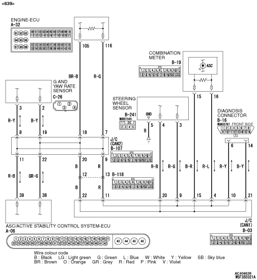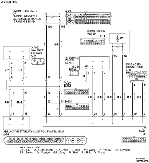 The steering wheel sensor output signal is sent to the ABS/Active stability control