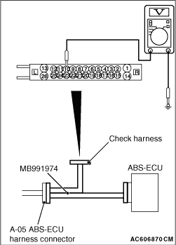 STEP 7. Wiring harness check between A-05 ABS-ECU connector terminal