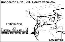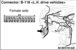 STEP 11. Connector check: A-05 ABS-ECU connector, B-118 intermediate