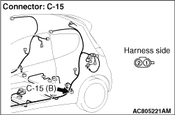 A-05 ABS-ECU connector terminal No.21 and C-15 wheel speed sensor <RL> connector