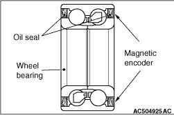 Loose wheel bearing may increase the gap between the wheel speed sensor and the wheel speed detection magnet encoder. Check the wheel bearing <FL> for looseness (Refer to GROUP 26 - On-vehicle Service ).