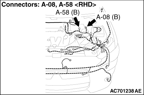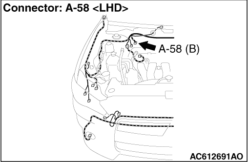 STEP 10. Connector check: A-58 ASC-ECU connector, A-08 wheel speed sensor <FL> connector