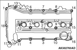 15. Install the cylinder head cover and tighten the tightening bolts using the following