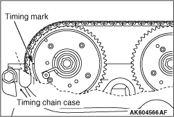 3.Turn the crankshaft clockwise, and align the timing mark on the exhaust camshaft sprocket