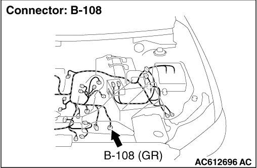 STEP 3. Connector check: B-108 A/T control solenoid valve assembly connector
