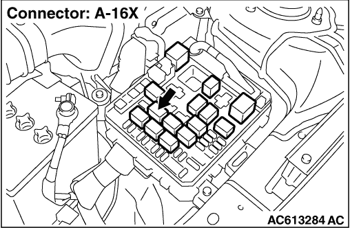 STEP 11. Connector check: A-10 intermediate connector, A-16X A/T control relay connector