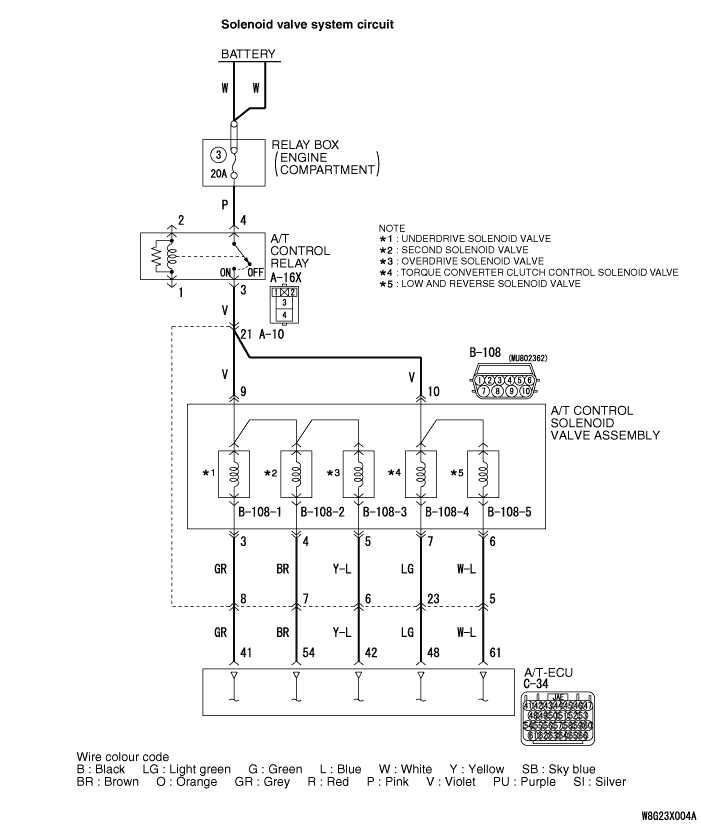 - The A/T-ECU energises or deenergises solenoid valve, based on input signals such as accelerator pedal position sensor opening angle, inhibitor switch, etc.