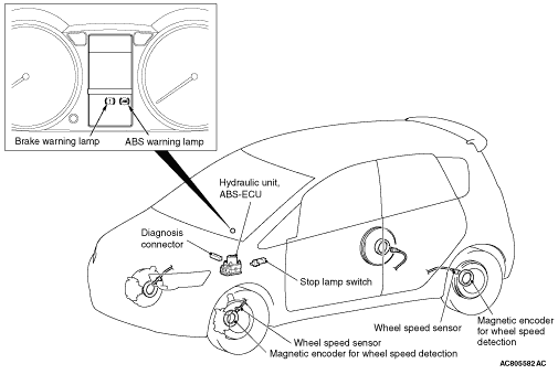 This ABS uses a 4-sensor system that controls all four wheels independently of each other, and has the following features: