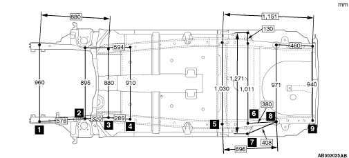 Centre of crossmember mounting hole