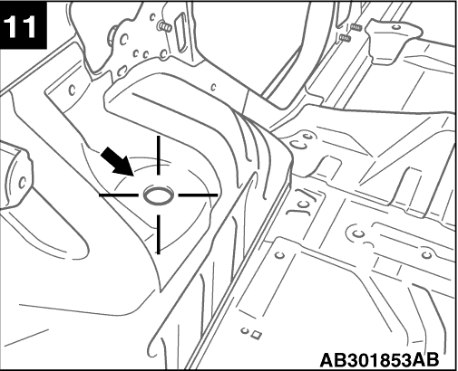 Centre of front deck crossmember mounting hole (lower)
