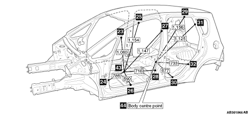 Tip of instrument panel bracket centre (Body centre point)