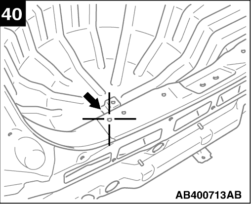 Centre of front deck crossmember mounting hole (lower)