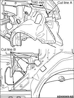 1.When removing the quarter panel lower inner, it should be cut 180 mm behind from cut line