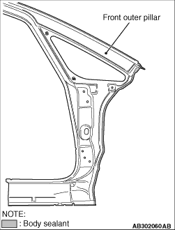8.Apply in advance the body sealant in the area shown in the figure when assembling the front outer pillar.