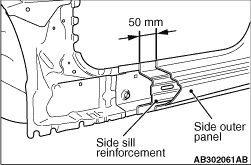 2.To reinforce the strength of the side sill cut area, cut the side outer panel 50 mm back from the cut-out area of side sill