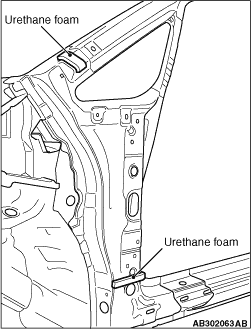 note A body loose panel cushion (genuine part number; 7260A114) should be used as the urethane foam. Cut this cushion to a height of 30 mm and to a thickness which it can fill the space between the front pillar reinforcements outer and inner at.