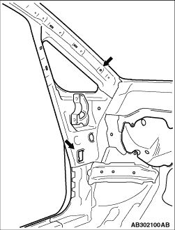 3.When installing the front pillar inner lower, apply body sealant in the areas shown in the figure.