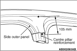 1.After cutting the centre pillar, cut the side outer panel 105 mm downwards from the position