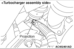 Tap the special tool MD998727 into the range (B) between the cylinder block and the engine