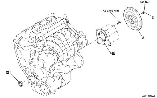 1.Use special tool flywheel stopper (MD998781) to secure the flywheel assembly.