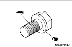 4.Apply a small amount of engine oil to the installation face of the flywheel bolts. 5.Apply specified sealant to the flywheel bolts threads. Specified sealant: LOCTITE 2701 or equivalent