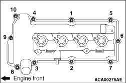 4.Tighten again the cylinder head cover assembly mounting bolts to the specified torque in the order of number shown in the figure.
