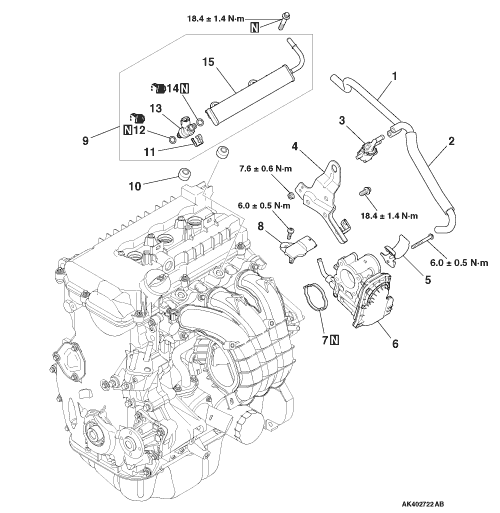 6.Tighten the delivery pipe assembly fittings to 18.4 ± 1.4 N·m.