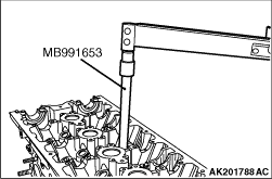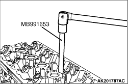 Use the special tool Cylinder head bolt wrench (MB991653) to loosen the cylinder head bolts.