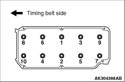 note Use the special tool Cylinder head bolt wrench (MB991653) to tighten the bolts.