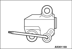 1.While pressing in the plunger of the timing chain tensioner, insert the pin as illustrated