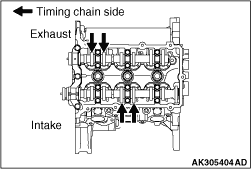 7.Measure the valve clearance at the location shown with an arrow. If the measured value does not conform to the standard value, record the measured value. |