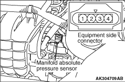 1.Disconnect the manifold absolute pressure sensor connector. 2.Measure resistance between terminals No. 3 and No. 4. Standard value: