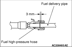 • After connecting the fuel high-pressure hose, check that it has been securely installed by slightly pulling in the removal direction. At this time, also check that there is approximately 3-mm play.