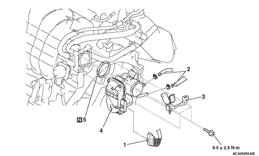 • Do not loosen the fixing screws for the resin cover of throttle body assembly. If the screws are loosened, the sensor incorporated in the resin cover becomes misaligned and the throttle body cannot work normally.