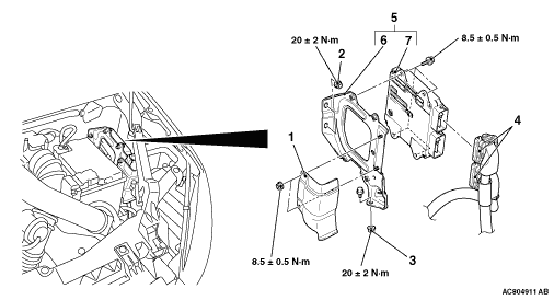 <<A>> ENGINE-ECU AND BRACKET ASSEMBLY MOUNTING BOLT AND NUT REMOVAL