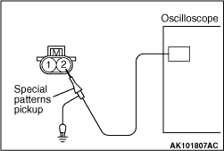 4.Connect the oscilloscope special patterns pickup to crank angle sensor intermediate connector terminal No. 2.