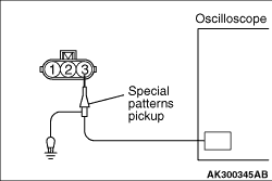 4.Connect the oscilloscope special patterns pickup to crank angle sensor terminal No. 2.