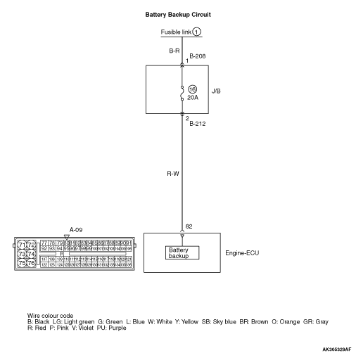 battery and A-09 (terminal No. 82) engine-ECU connector.