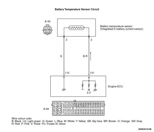 - Check battery temperature sensor itself (Refer to GROUP 54A - Battery - Inspection - Battery Current